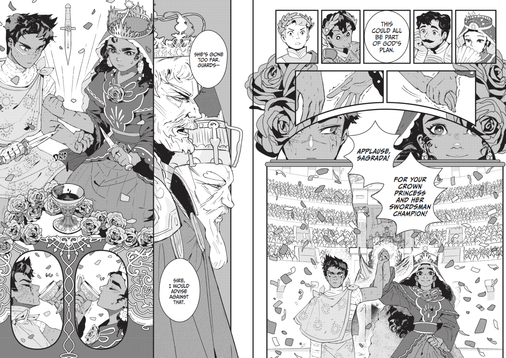 Champion of the Rose: Volume 1 is a manga/graphic novel about colonialism, religious horror, and queer trauma. It is rated T+ for Older Teen and is recommended for ages 16 and up.